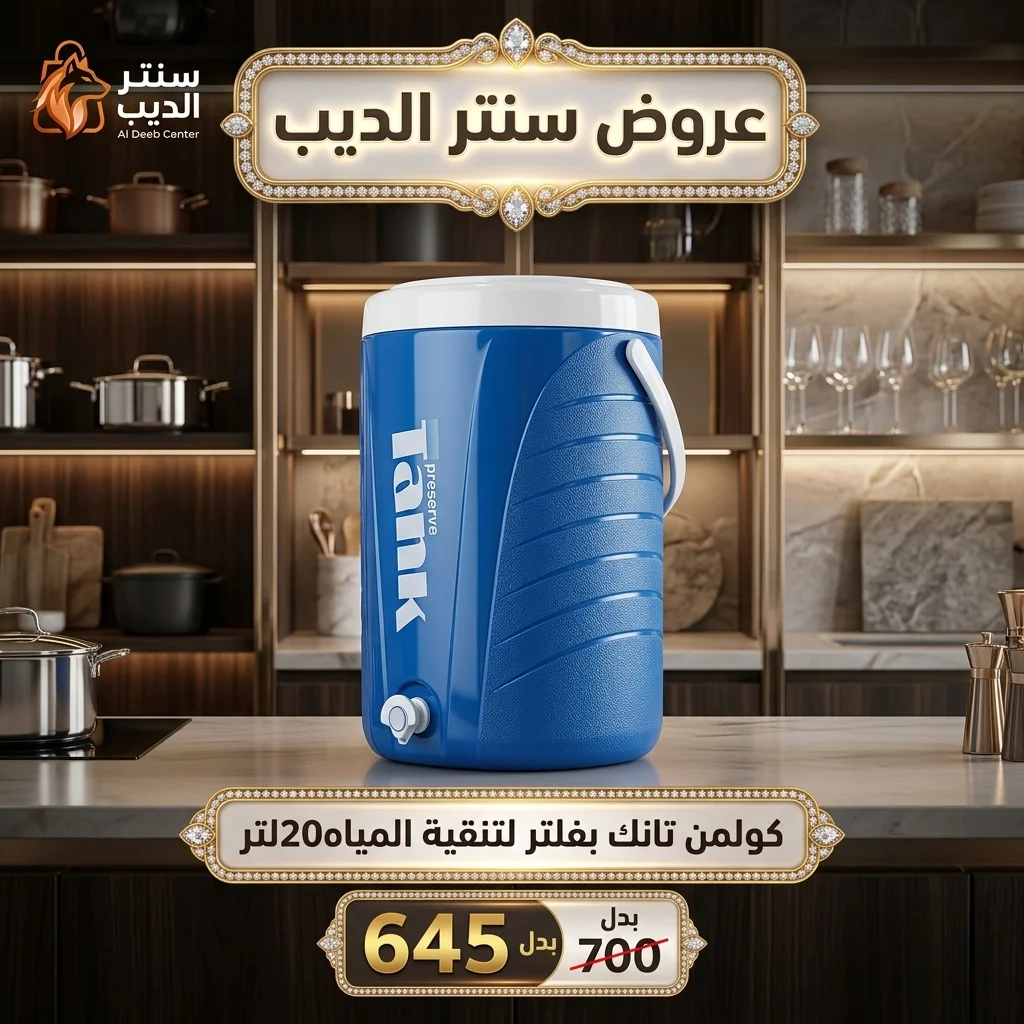 كولمن تانك 20 لتر بفلتر تنقية بيجمع بين السعة الكبيرة والأداء العملي، يحافظ على برودة المياه لفترة طويلة، وكمان الفلتر بيشتغل على إزالة الشوائب علشان تشرب مياه أنضف وأأمن.