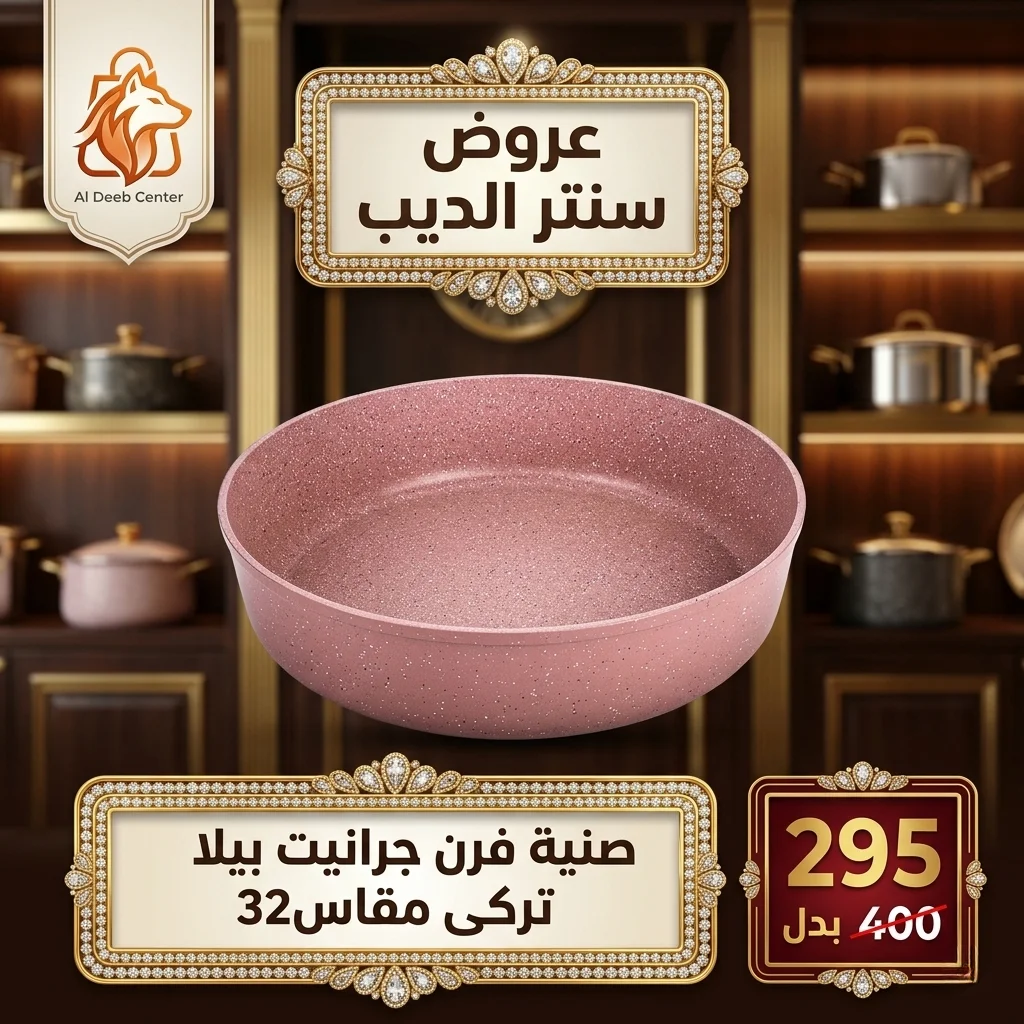 صنية فرن جرانيت بيلا تركي لون بينك مقاس 32 سم بتجمع بين الأداء القوي والشكل الأنيق، تخلي الأكل يستوي بشكل متساوي ومن غير ما يلزق، وكمان تضيف لمسة جمالية لمطبخك.