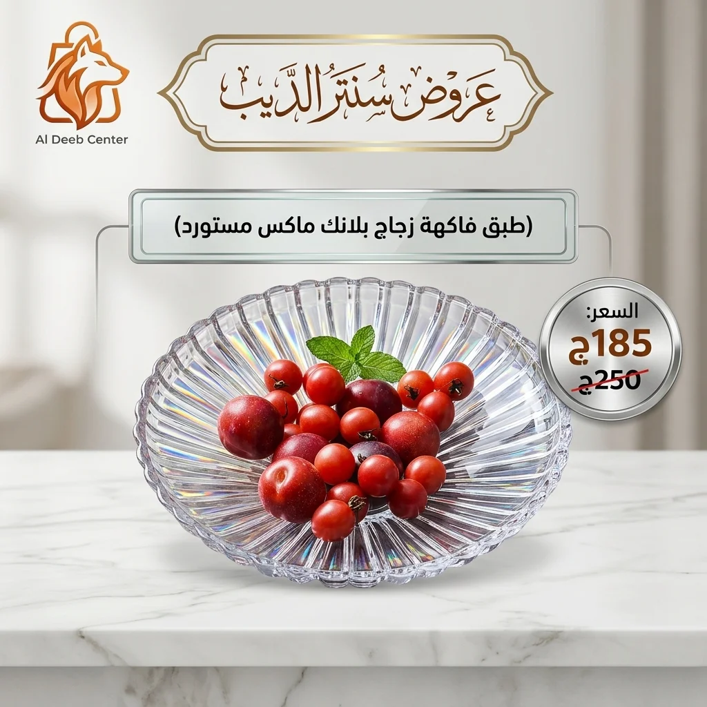 طبق فاكهة زجاج بلانك ماكس المستورد معمول علشان يضيف لمسة فخامة لأي تقديم، سواء فاكهة أو حلويات، وهيخلي كل حاجة تبان بشكل أحلى وأرتب.