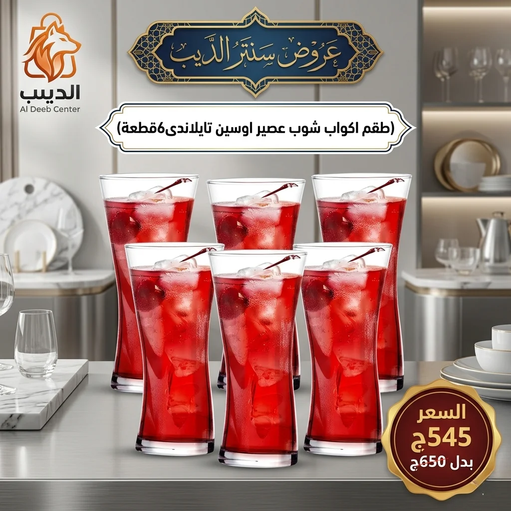 طقم أكواب شوب عصير اوسين تايلاندي 6 قطعة بيجمع بين البساطة والعملية، مناسب للعصائر والمشروبات الباردة في أي وقت، سواء استخدام يومي أو مع الضيوف.