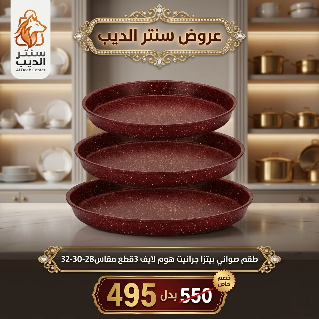 طقم صواني بيتزا جرانيت هوم لايف 3 قطع بيديك تجربة مختلفة بفضل خامة الجرانيت اللي بتمنع اللزق وتساعد على توزيع الحرارة بشكل مثالي، علشان كل بيتزا تطلع مظبوطة من كل ناحية.